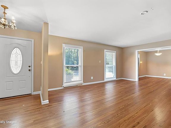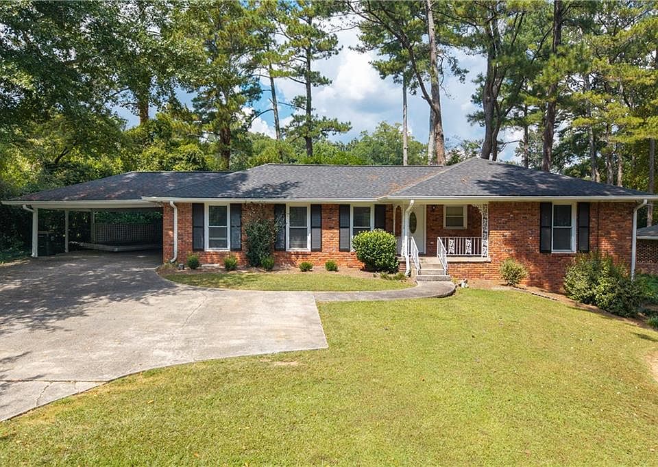Westfield Park! Solid four-sided Chatham brick ranch on a generous 0.43-acre lot. This home includes many updates: floor plan opened, roof, thermal windows, bathrooms updated, sewer line replaced to street. The living room is opened to family room and kitchen, offering great light and space. Hardwood floors throughout the main floor. Primary bedroom has a private bath with shower. A full daylight basement providing excellent storage or unlimited potential for finished space is protected by an AquaGuard waterproofing system and is stubbed for future bath. Private fenced level back yard with large paver patio. The home sits above the street with a 2-space open-carport and turn-round space. Located minutes from Chastain Park, Windsor Meadow Park, shopping and dining, all easily accessible via sidewalks. Amazing IB school cluster (High Point, Ridgeview, Riverwood). This property presents a strong opportunity to update, expand, or rebuild in a well-established neighborhood. NOTE furniture has been removed with AI, some of the flooring looks distorted, it is not. Hardwood floors are in good condition.