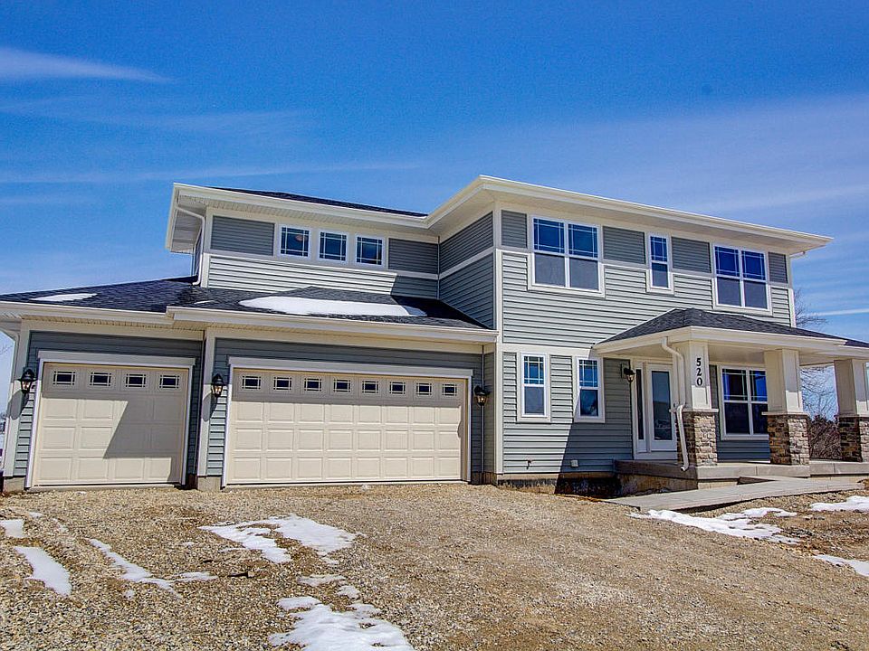 Beautiful exterior Prairie-style and interior Contemporary Style located on a highly desirable exterior lot in Prairie View. This gorgeous 4 BR, 2.5 bath home with 3 car garage offers engineered wood floors on main level, a Gourmet Kitchen w/ Granite Tops, SS Appliances, Bfast Bar & huge Walk-in Pantry that opens to the Dining Area & lg FR w/ gas FPL. The spacious Master Suite boasts WIC & a Master Bath featuring a Soaker Tub, W/I Shower, Tiled Floors and Surrounds & Dual Vanity. A Pocket Office, ''Flex Room'' w/French doors and Powder Room are located off the entry foyer on the main level.
