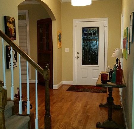 Floor plan perfection, open and airy, high ceilings and hardwoods and soothing neutral tones with stone accents abound this 4 bedroom, 3.5 bath home. This one takes your breath away from the second you walk in the front door. Great room with a stone fireplace is open to the kitchen with a huge island, breakfast room and keeping room/bonus area. Master suite on the main level is huge and features a master bath that includes double vanities, separate shower and jetted tub and to die for walk in closet. Upstairs you'll find another master and two huge bedrooms. Every bedroom has a walk in closet. 4th bedroom is big enough to be used as a playroom, hobby room or mancave. Upstairs hall bath features two 2 sinks and high vanity. Plenty of walk out, floored attic storage and a 2 car garage. Lovely deck out back with privacy galore on this cul-de-sac lot. Inside and out this house was made for family and entertaining friends and loving life at home.