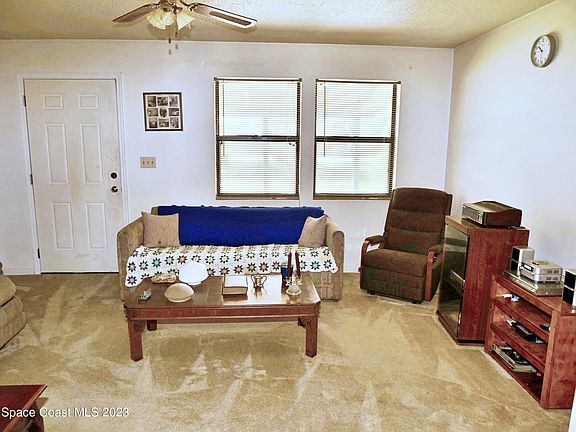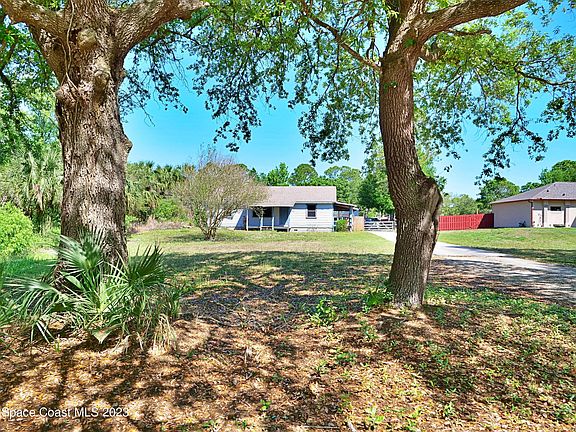 4 bedroom 3 bath home on 1 acre lot in Canaveral Groves! This property features a 5 year old roof, split floor plan with two master suites, cleared and fenced back yard, and indoor laundry room including washer and dryer. Plenty of entertaining space from the eat-in-kitchen, formal living room, dining area and family room; to the extensive wraparound back porch and covered front porch. The large 24x31 outbuilding offers an additional 24x15 covered parking area, bay door, electric and water; making it the perfect garage or workshop. With a little tender loving care, this property could be a fantastic homestead.