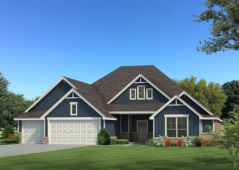 This Smith floor plan includes 3,515 Sq Ft of total living space, which includes 3,000 Sq Ft of indoor living space and 515 Sq Ft of outdoor living space. There is also a 640 Sq Ft, three-car garage with carriage doors and an in-ground storm shelter installed. This one-story luxurious home offers 5 bedrooms, 3 full bathrooms, 2 covered patios, a powder room, a custom-built 8' front door, a large mudroom, and a utility room featuring a utility sink. The great room features a luxurious 3-panel sliding door, a ceiling fan, a center stacked stone surround gas fireplace, Cat6 wiring, rocker switches throughout, wood-look tile, and an exquisite cathedral ceiling with a crows feet detail that extends from the living room to the kitchen. The 5-star kitchen supports a large center island with a trash can pullout, stellar pendant lighting, 3 CM countertops, stainless steel appliances, including double ovens and a 5-burner cooktop, well-crafted custom cabinets to the ceiling, and lovely tile backsplash. The prime suite includes a sloped ceiling detail, windows, our cozy carpet finish, and a ceiling fan. The spa-like prime bath is attached and holds separate vanities with framed mirrors, a large European walk-in shower, a free-standing tub, a private water closet, tile flooring, and a huge walk-in closet. Outdoor living has a corner wood-burning fireplace, a gas line, and a TV hookup. Other amenities include a tankless water heater, an air filtration system, a fresh air ventilation system, double glazed vinyl low E windows, R-44 insulation, and MORE!
