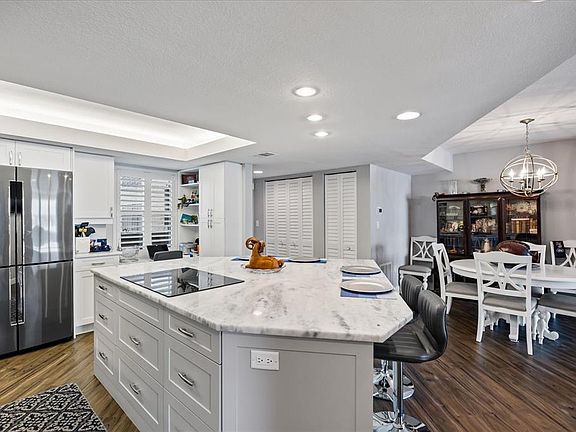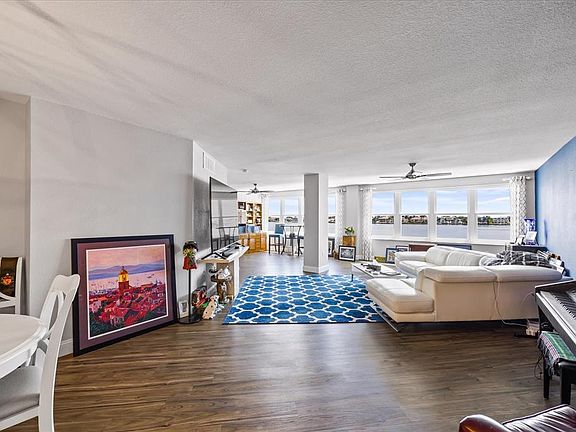 Welcome to paradise! Perfectly situated on the serene waterfront of St. Petersburg, this exquisite 2-bedroom, 2-bathroom condo offers breathtaking southeast-facing views from the third floor, giving you a "cruise ship" experience every day. Enjoy the tranquility of natural sunlight without the glare while enjoying the beauty of our Florida water views. Key Features include new floors, new carpet, and fresh neutral paint throughout. All electrical outlets and light switches have been updated for modern convenience. State-of-the-Art Kitchen: The brand new kitchen is equipped with top-of-the-line Samsung appliances, including a dishwasher, chef's oven, microwave with assorted features including a steam roast element and air fryer, and a refrigerator equipped with ionized water and ice maker and a wine compartment. A large bar complete with new 5 burner glass cooktop, slide out storage under the bar and hidden trash can that slides out. Enjoy soft close doors and drawers, a disposal, and matching marble finishes in both the kitchen and bathrooms. Luxurious Bathrooms: Both bathrooms feature brand new elongated toilets, marble finishes, & new plumbing fixtures. Each bathroom features new tempered glass barn door sliders in both showers and tempered translucent windows. 2 years new, high impact glass windows that rotate 90 degrees so that they are easy to clean! Custom Storage Solutions: Newly installed custom closets in the primary suite, guest room, hallway, and linen closet provide ample storage space. Additionally, enjoy two very large storage units on the 3rd floor (3x3 and 8x4) conveniently located walking distance from your unit. Comfort and Convenience: New air handler, a new 2.5-ton AC unit in a protected area, Wi Fi Voice Command thermostat and new full-size washer and dryer. The vents and air conditioning ducts have been recently serviced. Four new 52 inch ceiling fans with LED light bulbs. Primary Suite Retreat: The primary suite features new French doors and custom closets, providing a luxurious escape. Guest Room/ Office: The guest room includes a built-in floor-to-ceiling desk and shelving, perfect for a home office. Additional Amenities: A desk area with a window in the kitchen, 1 covered parking garage space, and free cable and internet (a $309 value). Resort-Style Living: Enjoy access to 4 pools, a resident center with a billiards room, card room, large auditorium, library, and event schedule. Active Lifestyle: Take advantage of daily workouts in the gym, tennis courts, and a sidewalk around the island. The community also features a canoe/kayak launch and 3 docks with boat slips available. Non smoking building. Security and Convenience: A gated community with key fobs and code, on-site nighttime security, and management. Visitor parking is available for your guests. Local Amenities: A store with a deli and butcher shop on the island makes everyday shopping convenient. Additional Perks: The community is 55 plus, can be rented for a minimum of 6 months, and includes a wheelchair lift into the main pool. No assessments or HOA increases scheduled, the milestone and wind mitigation studies completed and attached. Don't miss this opportunity to live in a beautifully renovated condo with unparalleled amenities and stunning water views. Schedule your private tour today and make this waterfront oasis your new home!
