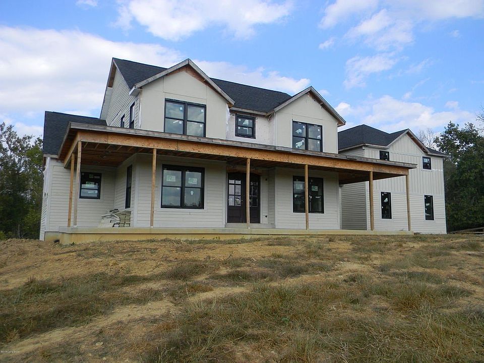 Home has 6 bedrooms and 5 full baths. Eat in kitchen with a large pantry, great room with fireplace, formal dining room, master bedroom and bath, office or sitting room, laundry, mud room, and another full bath on the 1st floor. 3 bedrooms and 2 full baths on the second floor, full unfinished walkout lower level that is roughed in for another bath. 3 car garage with a separate 2 bedrooms, full bath apartment. Abundance of privacy with 9.082 acres with a pond in front of the home and a creek in the back. Home needs all interior finishes, drywall, flooring, lighting and cabinets.