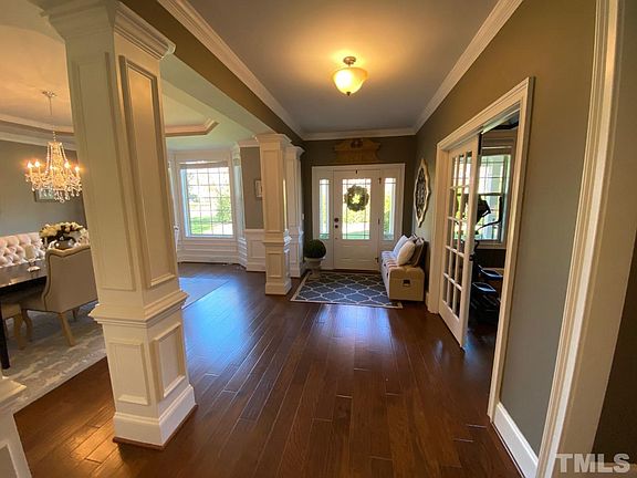 This meticulously cared for custom built home is in the perfect location just over the Cary border on a 1.1 acre lot in desirable Dutchman Downs. Enjoy all of the Cary amenities with no city taxes and low HOA fees of $75 annually. Community pool available. Owners haven't missed a thing. Over $80,000 in owner upgrades since purchase include built in bookshelves, huge stone patio with gas fire pit and outdoor kitchen, whole house water filtration system, and extensive landscaping. Gorgeous chefs kitchen.