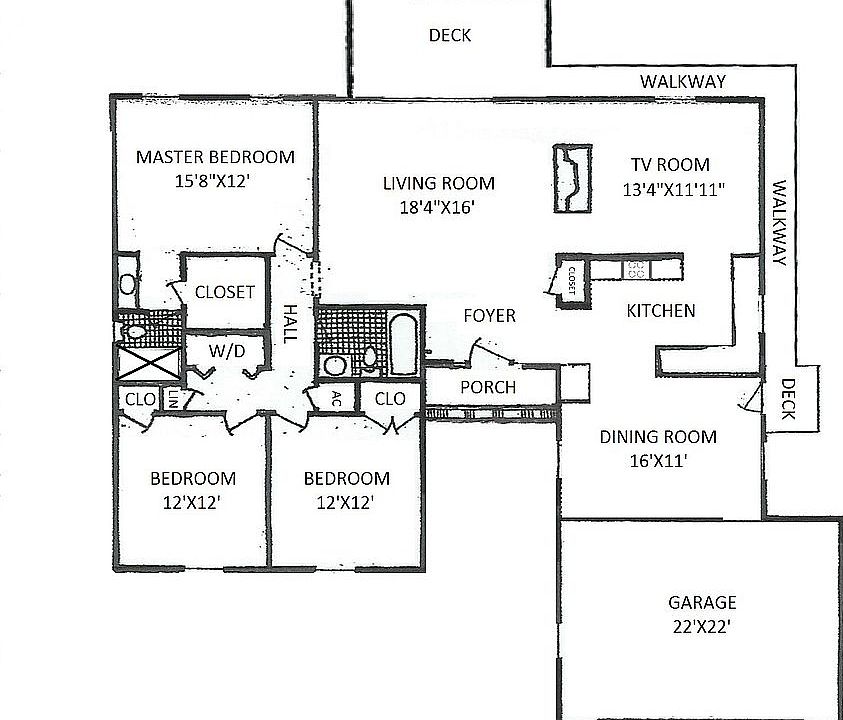 Single family home, 1576 sq ft, quiet neighborhood, home improvements ie: energy eff windows, new roof, shed, glass encl. entrance, two decks w/ connecting walkway. Open floor plan w/ TV room, kitchen and DR. Attached 2-car garage, 22 ft x 22 ft., built in cabinets/counter. AC warranty til 6/16.
