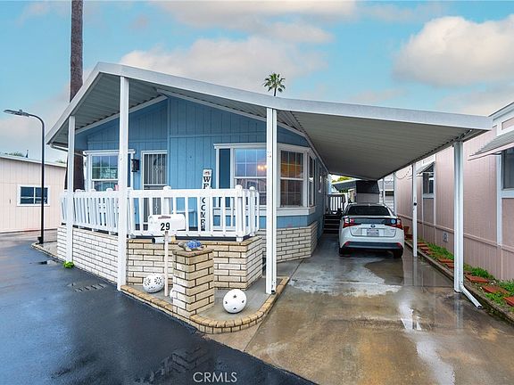 Welcome to your dream retirement oasis in the heart of Huntington Beach! Nestled in a serene 55 and older community just 1.5 miles away from the pristine shores of Bolsa Chica State Beach, this charming mobile home offers the perfect blend of comfort, convenience, and coastal living. Step into luxury as you are greeted by a newer porch, inviting you to relax and soak in the ocean breeze. The interior boasts fresh paint, creating a bright and airy ambiance throughout. A sleek stainless-steel sink and stove complement the updated quartz kitchen countertops, making meal preparation a delight. Experience effortless living with wood laminate flooring and double pane windows enhancing both aesthetics and energy efficiency. The screen door adds a touch of elegance while allowing for refreshing cross ventilation. Outside, admire the redone exterior paint, adding to the curb appeal of this coastal gem. Indulge in community amenities just steps away, including a sparkling pool where you can unwind and socialize with neighbors. With ample parking available, convenience is at your doorstep. Venture just a few minutes away to Huntington Harbour, where endless recreational opportunities await. From paddleboarding and kayaking to dining at waterfront restaurants or enjoying a sunset sail on a Duffy Boat, there's something for everyone to savor. Don't miss out on the chance to make this tranquil retreat your own. Embrace the coastal lifestyle you've always dreamed of in this meticulously maintained mobile home sanctuary. Schedule you’re showing today and start living the beachside retirement you deserve!