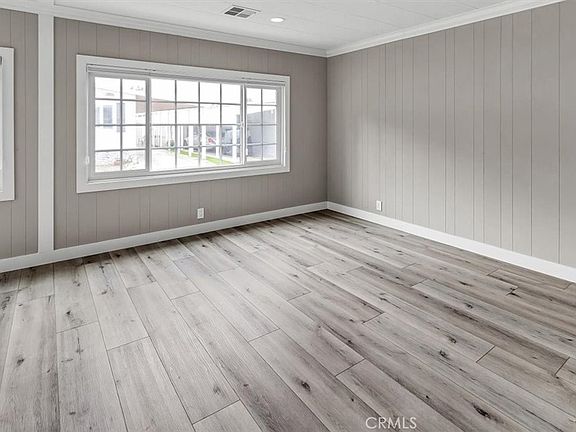 Remodeled and updated to contemporary style floor plan. European water proof vinyl flooring, crown molding, new white kitchen and bathroom Located in the Senior Community of The Groves. A resident owned community where you own a share in the mutual non-profit corporation of The Groves Homeowner's, Inc. that owns the land. this means, no space rent. The Groves Senior Community is in the City of Irvine, one of the safest cities in America! Community amenities include year-round heated pool and spa, community BBQ's with covered sails with table/chairs/sofas/BBQ’s, exercise room, tennis court, basketball, Pickle Ball, Lawn Bowling, banquet facilities, hair salon, RV storage lot, community garden spaces, 7-acre park with large covered pavilion with BBQ's, 9 hole putting green (Astroturf) and shed with games, woodshop, ceramics room, on-site Management and Activities Coordinator. Low Monthly maintenance fees and HUGELY discounted Cox Internet and Cox TV to all residents. Low Maintenance Dues, close to shopping, and so much more….cabinets. New appliances, larger vinyl grid windows, tiled showers, tankless water heater, new interior doors and frames.