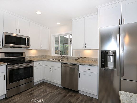 This home has so much character and beautiful upgrades. Starting with a built-in corner cabinet in the living room to matching frosted glass doors in the pantry and coat closet you will not want to miss the many details this home has to offer. The white built in dining room hutch has a custom tile top and hardware. Living room and dining room have vaulted ceilings. The kitchen offers granite counter, matching island and stainless-steel appliances with new white cabinets and granite backsplash. The kitchen opens to a huge drywalled family room which features 3 sky lights lending natural light. The big master bedroom has the largest closet I have ever seen. The custom master bath has a barn door, new Corian counters and white bead-board walls giving you a true spa experience. The enclosed patio with several new windows offers the perfect place to enjoy those warm summer nights. The home has newer laminate flooring, new vinyl dual pane windows & paint. The roof & water heater were replaced 2016. The Grove Senior Community is in the City of Irvine, one of the safest cities in America! Included in the price is the home and a Share in the Corporation that owns the land. NO SPACE RENT! Community amenities include year-round heated pool and spa, exercise room, tennis court, basketball, lawn bowling, banquet facilities, hair salon, RV storage lot, community gardens, woodshop, on-site Management and Activities Coordinator. Low Monthly maintenance of $297.00 a month. HUGELY discounted Cox Internet and cable.