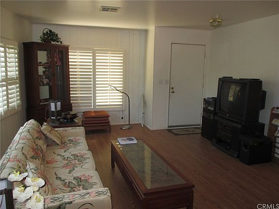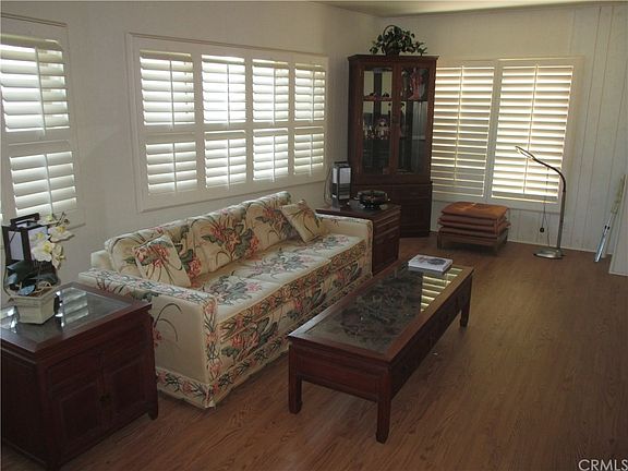 A Beautiful Upgraded Home with a Back Yard ! A spacious 1,704 sq. ft. (est.), two bedroom, two bathroom home. You can walk to the shopping center plus the home backs on the Irvine Walkway (Venta Spur) A great location ! In the wonderful community of The Groves Resident Owned Senior 55+/45 Mobile Home Park in Irvine, California. Upgraded Kitchen. Also upgraded with dual pane windows and slider, Plantation Shutters, laminate flooring, ceiling fans, a Custom Door to the Back Yard, a Fireplace in the Family Room, a separate laundry room, a "Tuff Shed" shed, a long carport, a cemented Back Yard, The front porch with patterned cement...nice, large enough for California outside dining and conversations with good friends. The Groves community offers many amenities and activities for the active senior yet a place for those who want a slower pace. Maintenance fee - $229/mo. Financing available. You must see this special home !