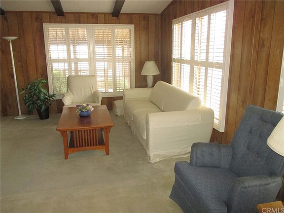 Great Location! Desirable Floor Plan! - Many desirable features! Plus a Room Addition! Backs to the Venta Spur (Irvine Walkway). You must see this 2006 sq,ft, (est.) two bedroom, two bathroom home with lots of natural light = plus a room addition with a view! Plantation Shutters, skylights and solar tubes are a plus! Some vinyl dual pane windows and slider. A large Kitchen with an island and a generous eating area. A separate office off the Family Room with built in shelves and storage. Off the Master Bedroom is the room addition with loads of natural light and a view which is currently used as a sewing room, but can be another office, for hobbies, exercise, a library or music room or to fit your needs. The Master Bathroom has been remodeled with a walk in shower, double sinks, mirrored closet/ storage. The second bedroom also has access to the room addition and is next to the second bathroom with a large stall shower and a linen closet. Earthquake bracing too ! The Groves is a Resident Owned Senior 55+ Mobile Home Park in Irvine California. The sales price includes the home and a community membership (share) of the corporation that owns the land so, there is NO SPACE RENT! There are many activities for the active senior, yet is a place for those who seek a slower pace. Low maintenance fee- $229/mo. Financing is available.