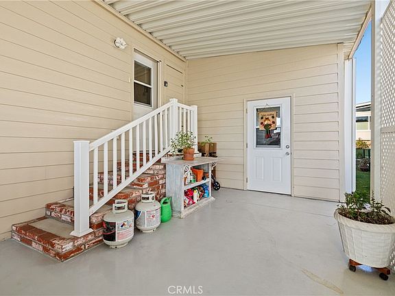 Sunset views are outstanding from this large front covered porch where beautiful mature shade trees provide a perfect place to relax. You can’t beat the location! A corner lot on the Greenbelt and close to the Club House. This newer 2008 meticulously cared for Silvercrest home with 1,542 sqft, 2 bedrooms & 2 bathrooms. Inside features neutral color drywall throughout, newly engineered wood flooring (installed 1/2023) in main living areas, and carpet in both bedrooms. Beautiful architectural design elements enhance the cathedral ceilings throughout providing an expanded layout feeling. Rich dark Kitchen cabinetry compliments Corian counters and island that provide plenty of space for food prep. The stainless-steel appliances (dishwasher, refrigerator, and microwave) are new - as well as the water heater and a newer A/C. Lots of natural light from skylight. Half-moon stack window above the 3 bay windows, bathes the breakfast nook with cheery morning sunlight. The spacious living room has lots of windows providing even more sunlight, making entertaining a breeze while Plantation shutters add sophistication all their own to the setting! Two French doors seamlessly connect the living area to the bonus library/den with a further statement of grandeur. The Master Bedroom boasts an ample walk-in closet and private bathroom with dual vanity and extra cupboard space. Oversized storage area has work bench. Newley painted with slip proof paint, the driveway is clean and fresh. This home has Cemplank siding which is fire-retardant and pest resistant. The Groves is a senior, resident owned community. Amenities include but not limited to...Beautiful clubhouse, large community meeting room, Lawn bowling, game rooms, cards, dancing, pickle ball, 7-acre park, gardens, greenbelts, ceramics, woodshop, year-round heated pool and spa, workout room and much more!