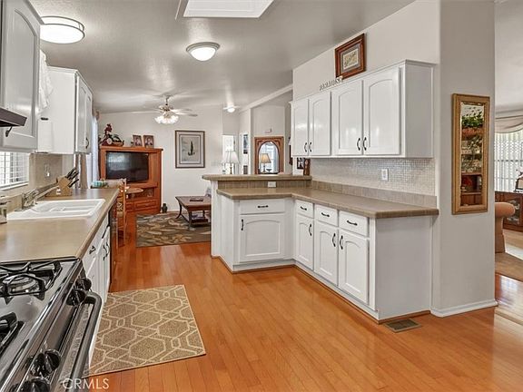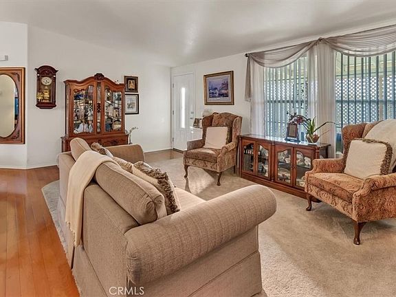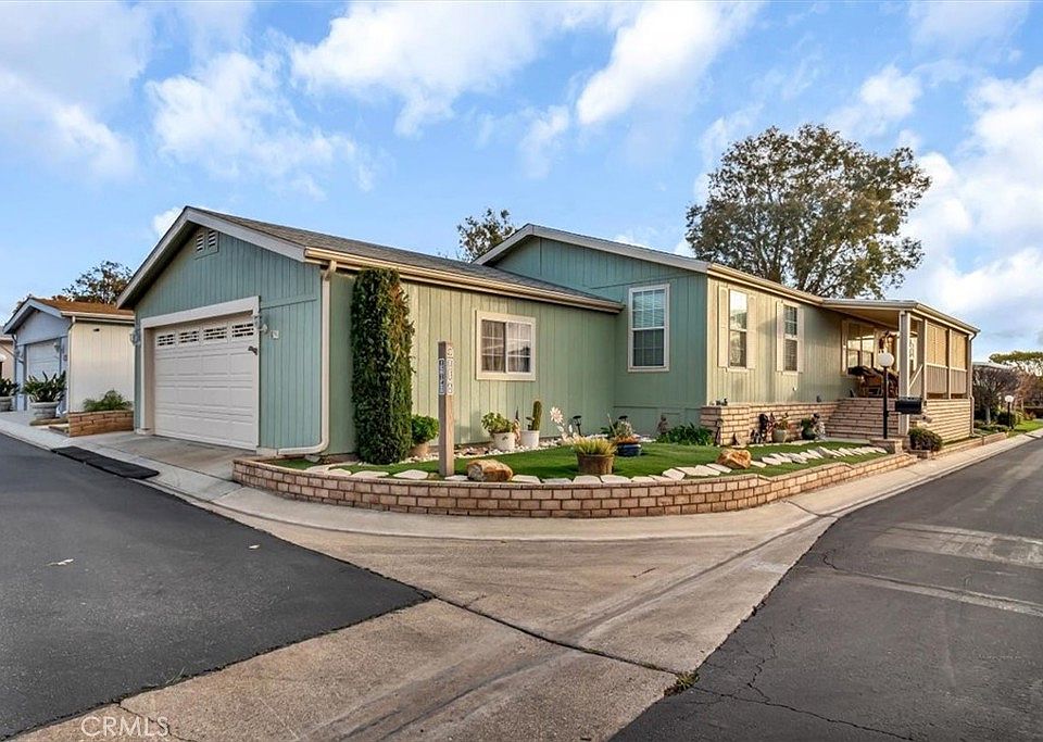 Don’t miss this beautiful and well maintained 2004 Cavco home featuring 3 bedrooms and 2 bathrooms, located on a corner lot and greenbelt with 2 car garage and clubhouse close. Great flooring plan with 2 guest rooms and bathroom on greenbelt side of home and large master and bath on opposite end of home. Ceiling fans throughout home, raised toilets, 2-year-old roof with covered gutters, newly tiled shower in master with large soaking tub. Wood flooring in kitchen, family room, hallway, guest rooms, new carpet in master and flooring in 1 guest room Custom cabinets in closets. Water filtration system, venetian blinds throughout home, vaulted ceilings, walk in closets. Exterior features extended covered porch, clean and easy hardscape and landscape with Astro Turf. Covered back porch to garage, epoxy garage floor with lots of built in cabinets. Locking hide-a-screen on front door. The Groves Senior Community is in the City of Irvine, one of the safest cities in America! Included in the price is the home and a Membership Certificate in the Corporation that owns the land. This means NO SPACE RENT! Community amenities include year-round heated pool and spa, community BBQ's with covered sails with table/chairs/sofas/BBQ’s, exercise room, tennis court, basketball, Pickle Ball, Lawn Bowling, banquet facilities, hair salon, RV storage lot, community garden spaces, 7-acre park with large covered pavilion with BBQ's, 9 hole putting green (Astroturf) and shed with games, woodshop, ceramics room, on-site Management and Activities Coordinator. Low Monthly maintenance fees and HUGELY discounted Cox Internet and Cox TV to all residents. Low Maintenance Dues, close to shopping, and so much more….