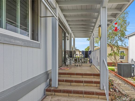 Lovely 1980 Lancer Parkwood Model with 1,344 sqft, 2 Bds/2Bths located on one of our beautiful Greenbelts with an extra-wide 2 car Garage. Enjoy the perks of a prime location that offers easy access to so many of our internal Groves' community, while still providing a peaceful retreat... including a walkway rose garden! Scenic raised porch overlooks perfect tree-lined sunsets making it an ideal spot for relaxation and contemplation. This very well maintained home offers the perfect blend of comfort & style. The exterior boasts newer 2021 roof, fresh paint, leaf-filter gutter guards, shade awnings & even newer earthquake bracing! The interior spoils you with newer HVAC System, cathedral ceilings throughout, double pane vinyl windows, kitchen features stainless steel refrigerator & oven, laminate flooring, and carpet throughout. As part of a gated community, residents enjoy the added security and peace of mind - redefining the best in active senior living in the prestigious community of The Groves located in the heart of Irvine!