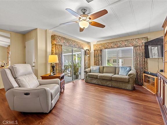 This exquisitely maintained and updated home in the gated Irvine community of The Groves is a true must-see! 1979 Goldenwest boasting 1,720 sqft, 3 Bedrooms AND large separate den, newer windows, roof, A/C and heater, laminate flooring, remodeled kitchen with Stainless Steel appliances and Corian countertops, brand-new washer and dryer – the upgrade list goes on! Spacious Master Bedroom with TWO huge walk-in closets providing you ample space for your wardrobe Master Bedroom is privately located at the rear of the home with its own newly updated bathroom. Large den frees-up both guest rooms for when the grandchildren visit. It’s time to treat yourself by taking in the sunrise with your fresh cup of coffee, you’ll find a haven of relaxation on the spacious raised covered porch with skylight. Exterior storage galore with both shed and enclosure area. Home has 3 solar tubes and ceiling fans. Trust us, you’ll definitely fall in love with this beautifully kept turn-key home! All this in The Groves Senior/Resident Owned Community! NO SPACE RENT. Lawn Bowling, Tennis, 7 Acre Park with Putting Green, Horseshoes, Garden Area, Year-round Heated Pool, Gym, Wood Shop, Ceramics, Clubhouse w/ Game Rooms/Pool Tables/Tabletop Shuffleboard, Library, Meeting Rooms, Wifi in Clubhouse, and much more!