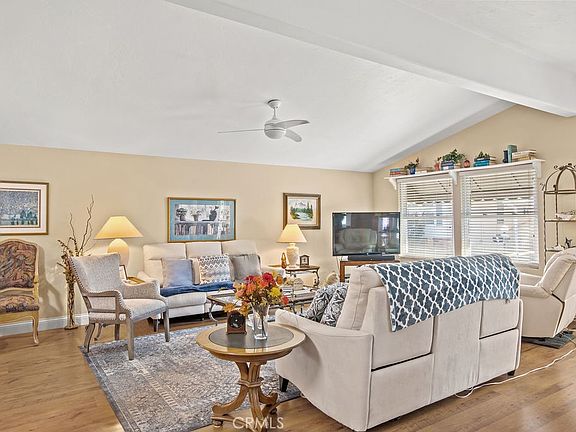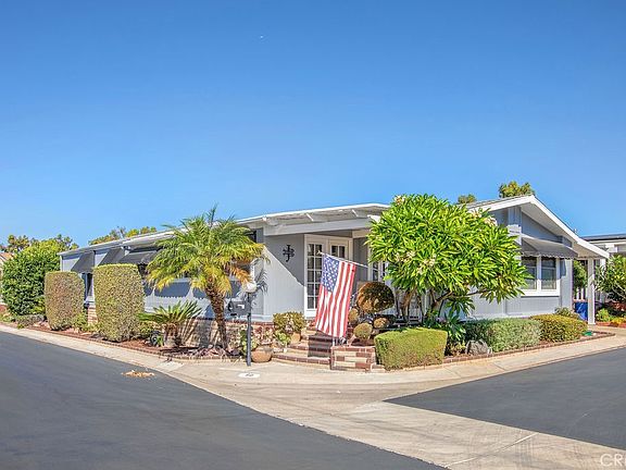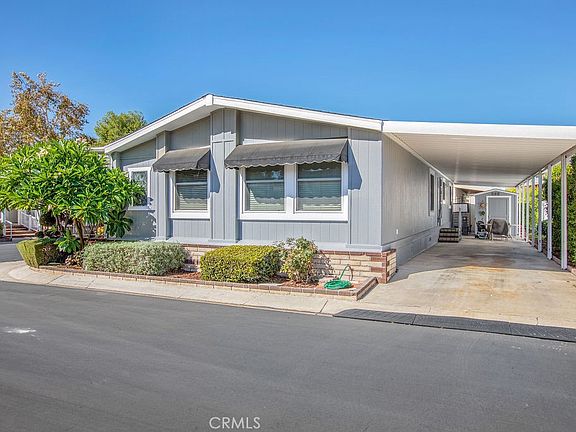 Beautifully remodeled home with approximately 2026 square feet of living space located on a corner lot. Cozy two bedroom/2-bathroom home has a lot of charm and great floor plan. Square footage includes enclosed porch. Home has been completely drywalled with rounded corners. Living, dining and kitchen all have vaulted ceilings, Vinyl windows throughout home. Newly faced kitchen cabinets, granite composite counters, new cabinets in both bathrooms with tiled floors. Skylights in guest bath and kitchen, kitchen has electronic shade on skylight. Master suite has 2 mirrored wardrobe closets and dressing area separate from bathroom. Dual master sinks and large garden tub with separate shower. Guest bedroom has mirrored closet doors. Newer laminate flooring throughout home as well. The Groves Senior Community is in the City of Irvine, one of the safest cities in America! Included in the price is the home and a Membership Certificate in the Corporation that owns the land. This means NO SPACE RENT! Community amenities include year-round heated pool and spa, community BBQ's with covered sails with table/chairs/sofas, exercise room, tennis court, basketball, Pickle Ball, Lawn Bowling, banquet facilities, hair salon, RV storage lot, community garden spaces, 7 acre park with large covered pavilion with BBQ's, 9 hole putting green and shed with games, woodshop, ceramics room, on-site Management and Activities Coordinator. Low Monthly maintenance fees and HUGELY discounted Cox Internet and Cox TV to all residents. Close to shopping. And so much more….