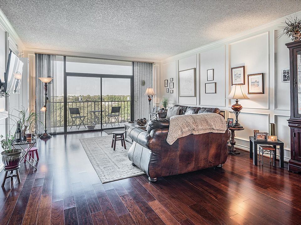 High rise living at its finest! Located on 6th floor which provides perfect views of the pool and gardens just above the treetops but high enough for expansive views. This very well maintained 2-bedroom 2 bath features authentic hardwood floors throughout, decorative finish outs, high ceilings, updated shower, new paint and much more! The Bonaventure provides resort style amenities that include 24-7 concierge, valet parking, indoor and outdoor pools, recently remodeled fitness center, wet and dry saunas, walking and jogging trails, meticulously manicured gardens, tennis and pickleball courts, and meeting and entertaining rooms for residents. Perfectly located close to all the restaurants and shops that Addison has to offer.