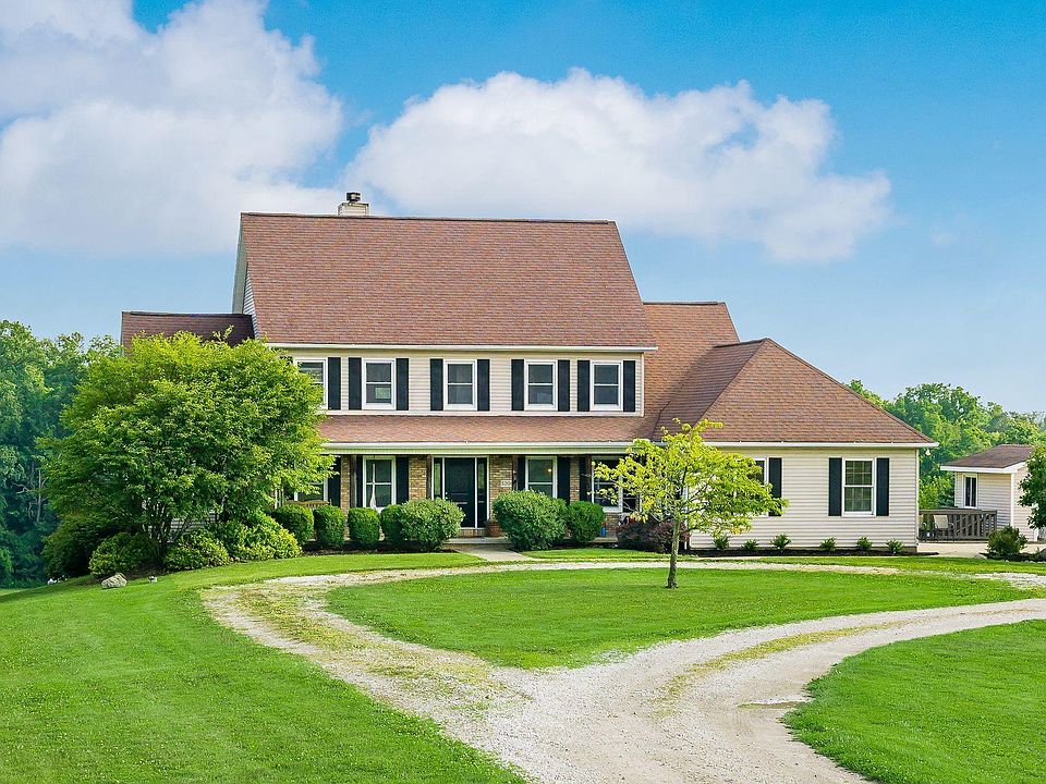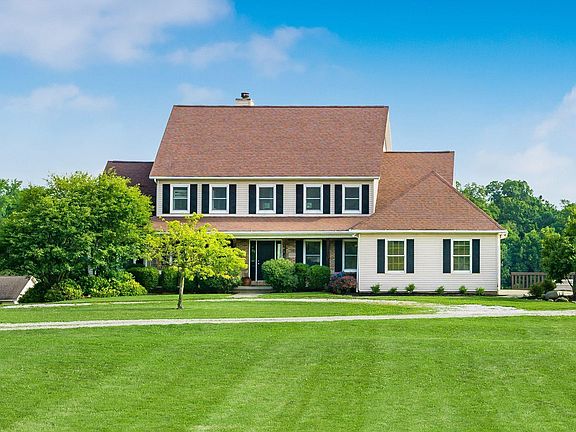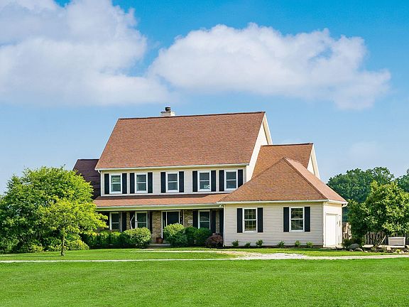 Beautiful 2 story located on over 2.5 acres. 5 bedrooms, 4.5 baths with over 3,000 square feet of living space with additional living space in the partially finished walk-out lower level. Spacious 2 story great room with a wall of windows overlooking the rear yard that includes floor to ceiling fireplace and built-in shelving. 1st floor master suite with tons of natural lighting. Additional master suite on the 2nd floor. Updated eat-in kitchen with newer appliances and flooring. 1st floor laundry. Refinished hardwood flooring on 1st floor. All new windows and front door. 2nd floor includes 4 bedrooms and 2 full baths. Huge walk-out lower level with full bath. Plenty of room for storage. Excellent views overlooking the property throughout the home.