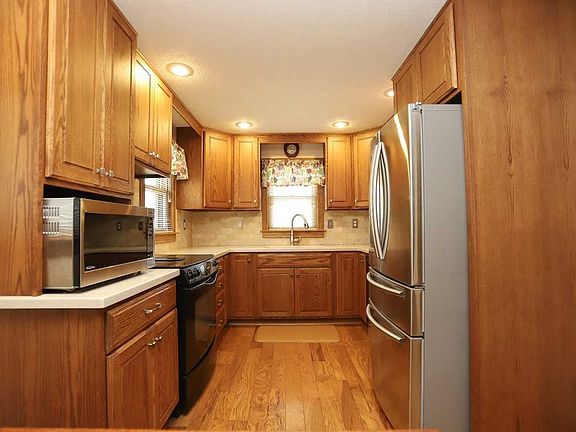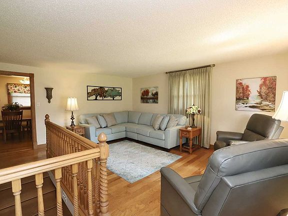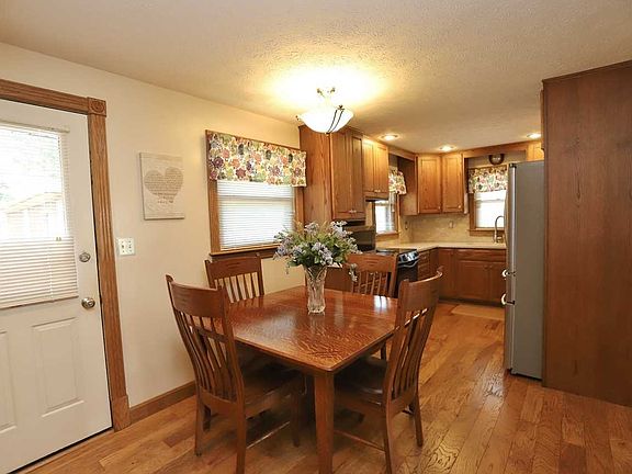 Welcome to this ranch style home featuring 3 bedrooms, 2 full baths with over 2,000 sq ft of living space. The main level offers a large living room with hickory hardwood floors and a large picture window for plenty of light. Updated eat-in kitchen includes custom Amish cabinets, solid surface counters, hickory wood floors, and a built-in breakfront. The extra large Master bedroom includes 2 custom walk-in closets, each 5x9, a ceiling fan and a French door to the aggregate patio. The Master bath was updated with a large walk-in shower in 2018. The main level laundry is conveniently located near the Master bedroom. 2 additional bedrooms each with a double closet and a full bath complete the main level. The lower level features new carpet in the recreation and family room plus plenty of storage. Outside you will find a large patio, yard barn, fenced back yard. The 2.5 car detached garage (26x28) includes electricity, work benches and a wood stove. Extra features include 6 panel solid wood doors, fluted trim, pull down stairs to storage, new water heater in 2013. Seller is providing a 1 yr 2-10 Home Buyers Warranty. This home has been well maintained by the current owners who have lived in the home over 44 years. Conveniently located to Oak Hill Library, shopping, Hwy 41 and I69 and the airport.