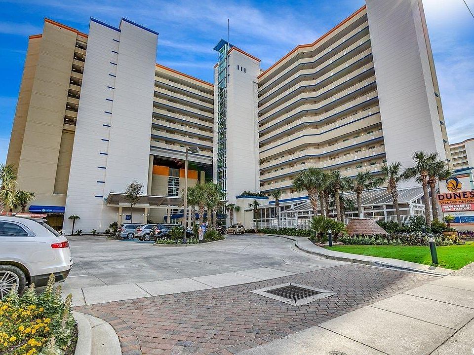 Roomy "double bay" two bedroom condo in Dunes Village Resort. Excellent ocean views from both the living room and the master bedroom, both of which open onto a large private balcony. This condo is the first one back from the direct oceanfront so it has a spectacular ocean view (see pictures and floor plan). Perfect second home with fantastic rental income. Fully furnished, accessorized and nicely appointed. Lots of recent upgrades. New HVAC in 2023. LVP Flooring throughout. Full kitchen, washer/dryer. Granite counter-tops in kitchen and baths. Double sinks in master bath. Dunes Village Resort boasts the most substantial indoor water park ever built in the area –over 30,000 SF in its combined phases. Indoor water attractions include a 250 FT lazy river, multiple indoor water slides, massive swimming pool with water volleyball and basketball, hot tubs, kiddie pools and more. There are also extensive oceanfront outdoor water amenities as well along the 600 plus linear feet of beach. Other Dunes Village features include a full-service restaurant, a coffee shop, an arcade, tennis and basketball courts onsite, a fitness center, a seasonal poolside café and Tiki bar, a gift shop and an attractive check-in lobby. Dunes Village is located in an upscale area just north of Myrtle Beach’s famed Golden Mile, a little over a mile from the downtown hotel area. Broadway at the Beach, The Carolina Opry, The Myrtle Beach Boardwalk, Restaurant Row and the area's other many attractions are just a few minutes away. The HOA fee includes water/sewer, unit electric, cable, internet and telephone, as well as building insurance and HO6 contents insurance. All information is deemed correct, but it is the responsibility of the buyers and their agent to verify all information.