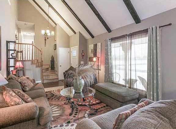 Great corner lot with privacy! Move-in ready! Vaulted ceiling upon entering this beautiful home! New carpet throughout, new wood laminate flooring, and new tile in master bath shower. Many options for living/dining room area with it's large open layout! Eat-in kitchen opening up to the hearth room. 4 bd 2 ba - Loft area can be used for a great office area or bedroom. Basement has surround sound wiring with wetbar! Outbuilding for additional storage. Riding lawn mower negotiable. Oversized garage and workspace area. New furnace in 2008. Schedule your showing now! This is a great find with a large backyard!
