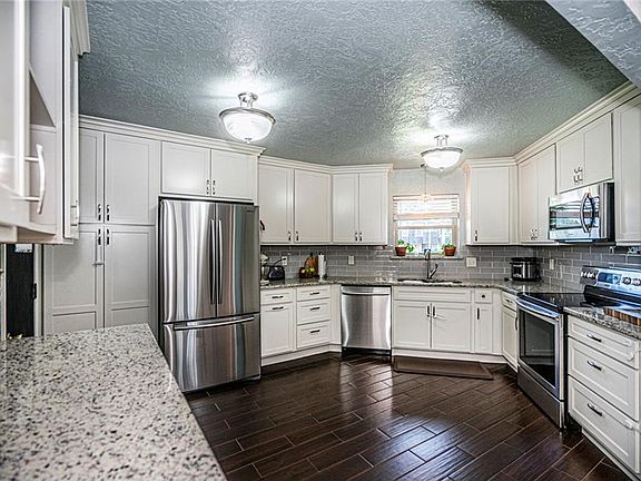 ***Beautifully updated home with huge living room and fantastic kitchen***2016 kitchen remodel included new cabinets, new stainless dishwasher, range, & microwave/vent, new tile floor & tile backsplash and new granite countertops***Open spacious kitchen with great storage and large coffee bar***Hall bathroom updated with new tile and vanity including granite countertops***Master bathroom updated with new vanity and tile and granite countertops***New carpet in 2019***New windows in 2015***New heating and air conditioning in 2016***Wood fence is two years old***Fireplace with gas logs in living room***Huge patio is perfect for outdoor living/dining plus large tree offers great shade in backyard***Large corner lot***Great location within walking distance to great park and easy access to turnpike***