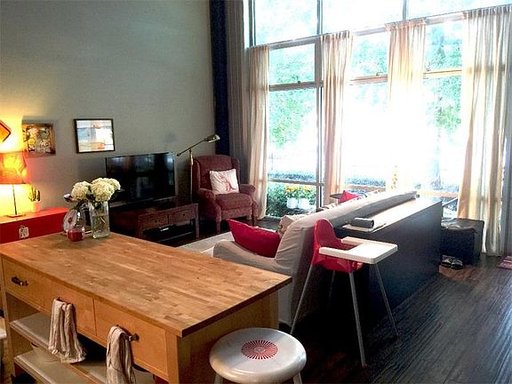Authentic loft space with 14' ceilings, dual skylights, semi-private back porch and yard. True private second bedroom with solid enclosed ceiling. Walk across the street to Chamblee Marta station! Short walk to restaurants, shopping, and Chamblee's Antique Row. Huge floor to ceiling wall of windows in family room and hardwood floors throughout. Kitchen full of stainless steel with butcher-block accents. Extra storage space and plenty of room to entertain. Two reserved parking spaces included.