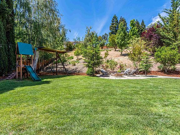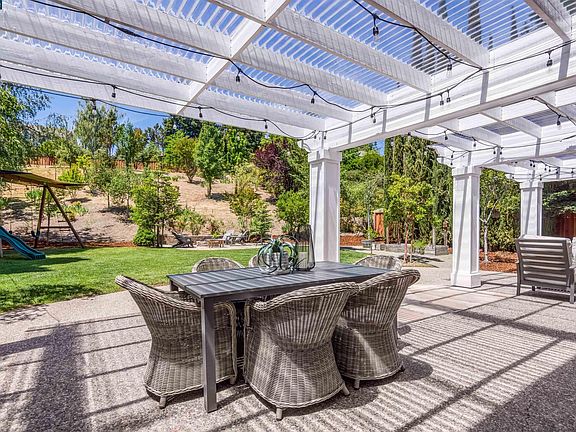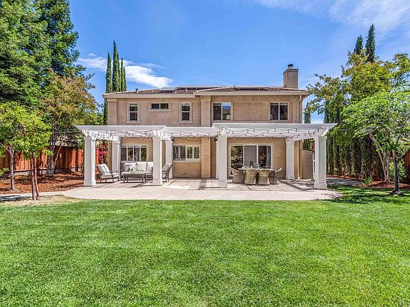 Prime location with no front or rear neighbors on nearly 1/2 acre. Ultimate privacy, large backyard patio covered by a trellis, fire pit and play structure on a huge grassy area. $70k Owned Solar- 31 panels and 2 power walls, capable of charging two electric cars. Vaulted ceilings throughout, great room with kitchen, family room overlooking the backyard. Chef's kitchen with stainless steel appliances, wine fridge and island. Formal dining and living rooms. Bedroom and full bath downstairs, even a large laundry room with cabinets and a sink. Spacious primary suite with an amazing bath featuring a large walk in shower, soaking tub, dual sinks, separate make up counter and ample closets. Great sized secondary bedrooms that share an updated bath with dual sinks and a tub shower. 3 car garage. One of the largest lots in this fantastic neighborhood that is close to the park, trails, top rated SRV schools and Bishop Ranch.