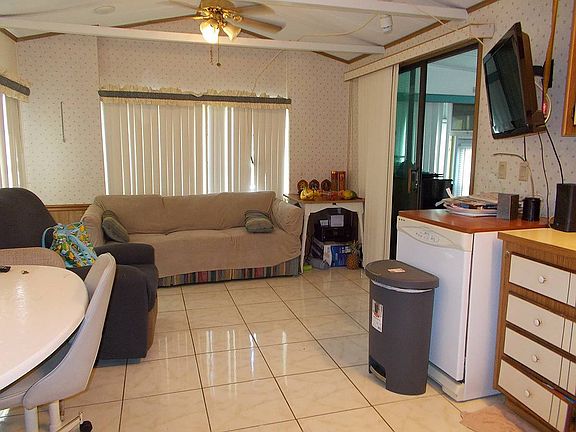 This nice home features 1 bedroom and 1 bath, tile flooring throughout, cathedral ceilings, newer plumbing, newer A/C, and so much more. Great Florida room. Small yard in the back with shed. Parking on the side. Great community to live and play in with awesome amenities. Close to shopping and the beach.