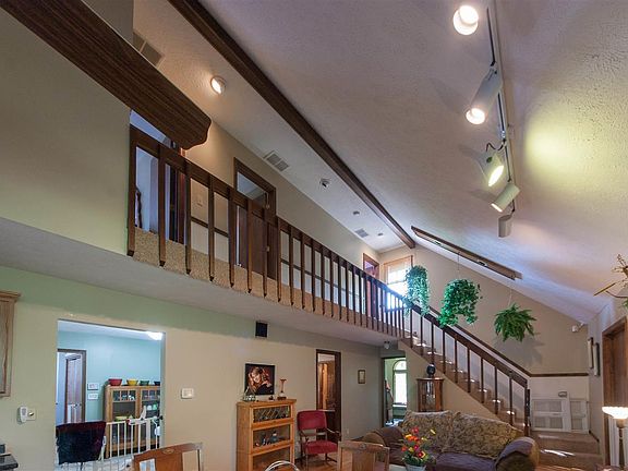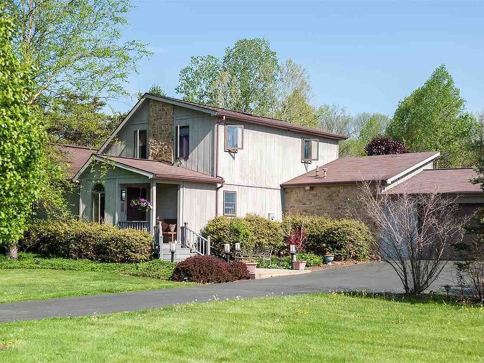 This home is an entertainer's dream! Situated on five idyllic acres in NW Monroe county, this sprawling contemporary features ample indoor and outdoor spaces, perfect for parties, gatherings and events! Making great use of natural materials like stone, wood and metal, this home offers large-scale rooms with gleaming red oak hardwood floors and ample windows and angles that bring in an abundance of natural light. Step inside the large entry with slate floor, which has a large 5x5' walk-in closet and a newly updated half bath, and walk thru to the dining area with cathedral ceilings and a beautiful stone woodburning fireplace. The great room is an unbelievable 770 sq feet, features an office nook, built-ins and a gas log fireplace, and opens onto a beautiful screened-in porch overlooking the backyard. The kitchen offers granite counter tops, Frigidaire gallery range and refrigerator, Bosch dishwasher and ceramic tile flooring. On the other side of the kitchen, the family room/den affords privacy and quiet, and walks out into the garage area. The two car garage is heated and has a half bath with a skylight that walks out to the pool area. The one car garage is not heated but does have electric overheard doors. Upstairs you'll find a catwalk overlooking the dining area and two good sized bedrooms with a large updated bathroom featuring a double vanity and slate floors. The main floor bedroom has a fully appointed en suite bathroom with glass vessel sink and slate floors. At the rear of the dining area is a beautiful three-season room with hot tub and wood burning stove. Outside, the grounds have been extensively landscaped and feature numerous conversation areas, and a gated in-ground pool with beautiful 15'x15' pool house with cherry hardwood floors.