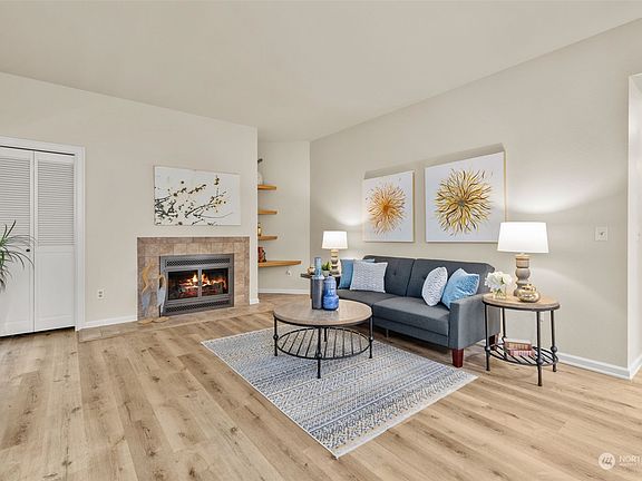 It’s all about location, you’re only blocks away from University of Washington, University Village shops, restaurants, & so much more. Inside this top floor unit, you’re greeted by a spacious entry w/ storage galore. Enjoy the open living layout, chilly days by the wood burning fireplace and sunny days on the private balcony with lush greenery views. High ceilings and skylight in kitchen provide so much light. Primary with large closet space and separate from the main living area. There is so much to love in this University Place Condo - fresh paint, new flooring, new carpet, in-unit laundry, and so much more. Don't miss out on calling this home! Designated & secure garage parking and a storage locker.