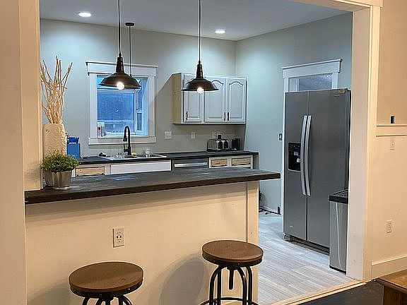 Completely renovated 5 bedroom home on a peaceful, fully fenced, 1/2 acre lot just 10 minutes to Springfield’s westside. This home was taken down to the studs and rebuilt with new insulation, new wiring, new plumbing, and new HVAC. The walls were removed to create an open floor plan, the ceilings were raised to 9 feet, and the original hardwood floors were refinished to create a beautiful open, modern farmhouse feel. The kitchen has bright white cabinets, new recessed lighting, as well as pendant lights over the breakfast bar and all new matching stainless steel appliances. The bathroom ceiling was also raised and vaulted, new bathroom flooring, vanity and new water heater. Enjoy amazing sunsets from the fully fenced backyard which also includes a barn and chicken coop and new privacy fence. Nothing to do but move in and start to enjoy the view from the welcoming front porch, the open living space, and the beautiful backyard.