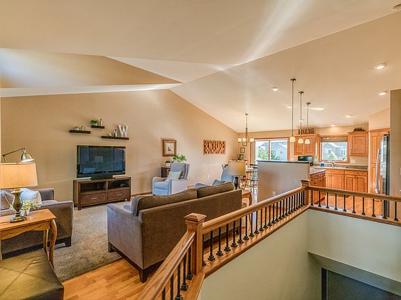This ranch style home is move in ready and fully finished from the main floor, to the basement, to the garage! The main floor features an open floor plan with a large vaulted ceiling. The kitchen has custom cabinets, a spacious island, gas range and a sizable pantry. The master bedroom has a vaulted ceiling and separate bathroom with double sinks and walk-in closet. Two additional bedrooms, a bathroom and optional office closet or laundry round out the main floor. The basement is ready to host parties and holidays. The large family room includes a great bar, fireplace, and a 110 inch home theater for watching movies with the family or football with friends. Two bedrooms with walk-in closets, a bathroom with heated floors and a huge storage room/laundry finish out the basement. Hunter Douglas window coverings are used throughout the home including blackout shades in all the bedrooms. The 3 stall garage features a wainscoting wall detail, hot and cold water with sink and floor drain. Outside you will find a large patio off the back deck, in ground sprinkler system and large parking accessory pad next to the garage. This home is in the desirable neighborhood of Boulder Ridge and is within walking distance to the Liberty Elementary and Horizon Middle schools. Realtors welcome.