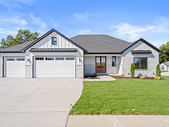 This stunning new construction ranch home offers exceptional convenience and space with a unique 4-car garage setup, featuring a 3-car attached garage and an additional built-in deep garage accessed via a separate driveway. Upon arrival, you'll be welcomed by the striking double door entry, setting the tone for the stylish and thoughtfully designed interior. Step inside and discover an open-concept layout that seamlessly connects 5 spacious bedrooms and 3 beautifully finished bathrooms, perfect for modern living. Buyer to verify all facts and information including but not limited to schools, taxes, sq. footage, lot size, room size, restrictions, HOA fees, etc. The center of the home is the gourmet kitchen, where gleaming quartz countertops, stainless steel appliances, and a large center island invite culinary creativity and social gatherings. The connected dining room overlooks a lovely screened porch, offering peaceful views and a relaxing retreat for outdoor moments. Stunning built-ins and a fireplace provide charm and comfort, while the finished basement is a true standout, featuring a full-size wet bar ideal for entertaining. Every detail of this home exudes quality and luxury, making it the perfect place to call your own.