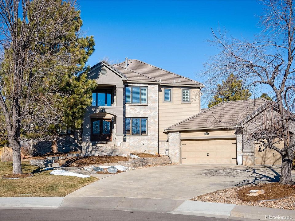 Ideally located at the end of a cul-de-sac, on an oversized lot in coveted Heritage Greens, is an immaculate 2-story home boasting over 5,400 total square feet and a floorplan designed for entertaining. You are warmly greeted by double oak doors leading you into a foyer with vaulted ceilings, stunning cascading staircase and gleaming hardwood floors. The beautifully renovated kitchen features Crystal cabinets, granite countertops and was uniquely crafted for the inspired home chef. You will take note of the endless storage space, stainless steel appliances, large center island and sought-after open floor plan allowing guests to spread into the family room or dining room while still being close enough for conversation. The main level also features a home office with beloved built-in shelving and French doors with a glass inlays, spacious laundry room with additional storage, living room and ½ bath. Seamlessly entertain on the large deck and enjoy the Colorado sunshine. Upstairs you will find the primary suite plus three additional bedrooms and two updated ¾ baths. The primary suite feels grand as natural light pours through the Northeast facing windows. Cozy up next to the gas fireplace or unwind in the generously sized soaking tub. The walkout basement is one you will never want to leave! Featuring a new home theater, wet bar with beverage refrigerator, 5th bedroom, ¾ bathroom and loads of storage space! The oversized 3 car garage is a bonus and features additional storage space. This home has been meticulously cared for and is move in ready. Notable improvements include plantation shutters through the home, new backyard fences and recently updated front yard landscaping. Heritage Greens is an unbeatable location, feeding into highly acclaimed Littleton Public Schools and is close to all your favorite amenities. Welcome to your new home!