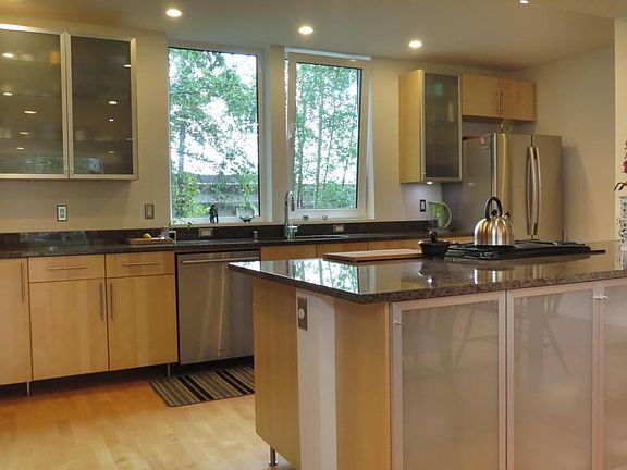 Enjoy comfortable living in this beautiful modern townhouse! End unit with north windows allowing diffused light into living room and master suite, backs to greenbelt with views from kitchen and upper bedrooms of the woods and mountains. All of the features you want including smart things home automation system, custom granite countertops, custom installed recessed lighting, custom IKEA master closet, triple pane windows, home theatre speaker installation, safety night-activated hallway lights, and private rooftop patio.
