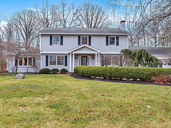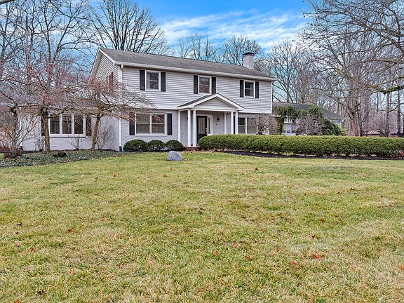 Stroll the lush grounds of your new, 2+ acre personal retreat. Mature trees and a wooded area add to the privacy, while the sculpted grounds give the air of a private park. The in-ground heated pool, is fenced with a paved patio featuring a pergola. Also included in the back is a two story shed, for storage or possibly a she-shed/man cave! A brick walk leads to the updated 3,426 square foot home. Meticulous maintenance and architectural detail lend luxury to the residence. The foyer leads into the powder room and living room. The recreation room has vaulted ceilings featuring beams, built-ins, French doors and fireplace. The family room is entered through French doors and features a shiplap ceiling with beams, floor-to-ceiling brick fireplace, built-in storage and panoramic windows. The living room also features a fireplace and has double entrances with French doors. The spacious kitchen features ample granite counter space with island, custom cabinets and opens into the formal dining room with chandelier. Upstairs are 4 bedrooms and 2 full baths. Recent updates include all new flooring, new pool liner, new lights, new sump pump, new backsplash, new fireplace mantles, and fresh paint throughout.