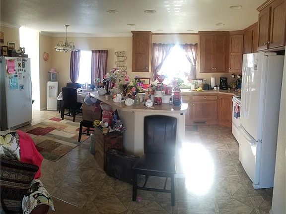 Charming newer man. home on South end of town. Please be aware on county site it shows the prior home that was on property. This home is about 1400sqft, with 3bd/2bth on just over an acre, fully fenced w/ chain link fencing & R.V hook-ups. Has an unfinished garage that mainly just needs windows/doors/insulation/siding to complete this structure, approx 33x34ft. Concrete pad, roof, plumbing/electrical hook ups and framing complete.