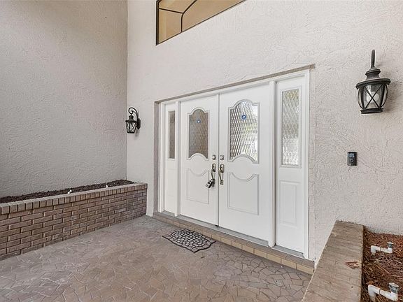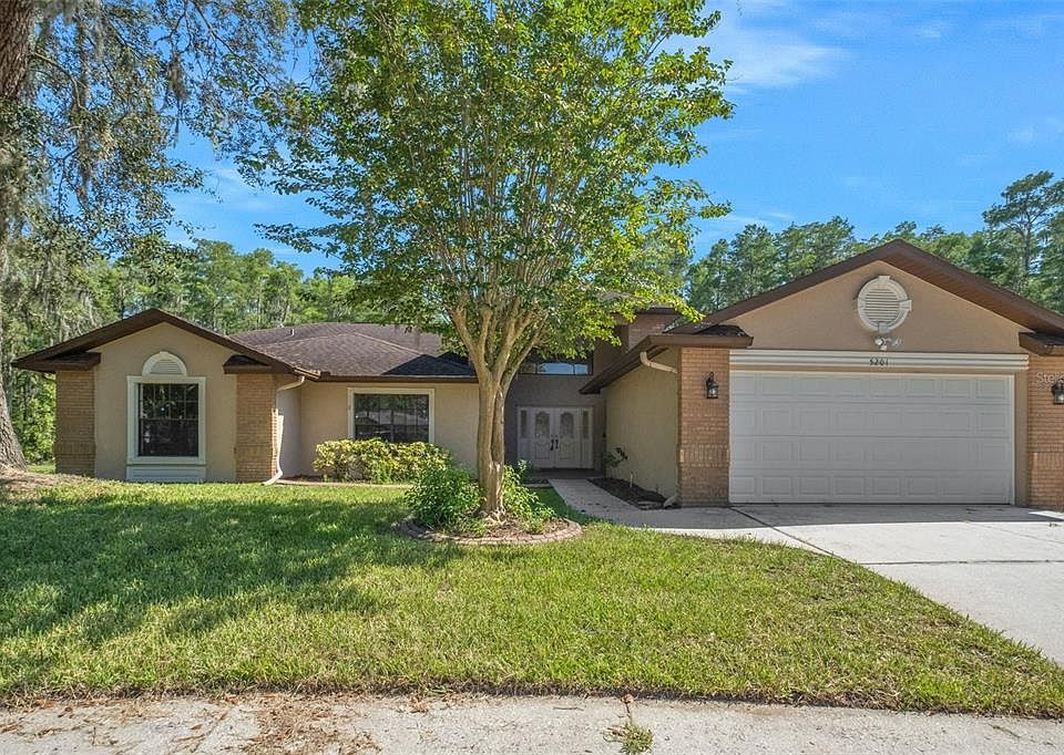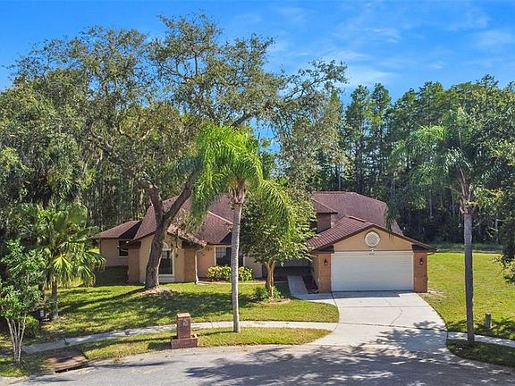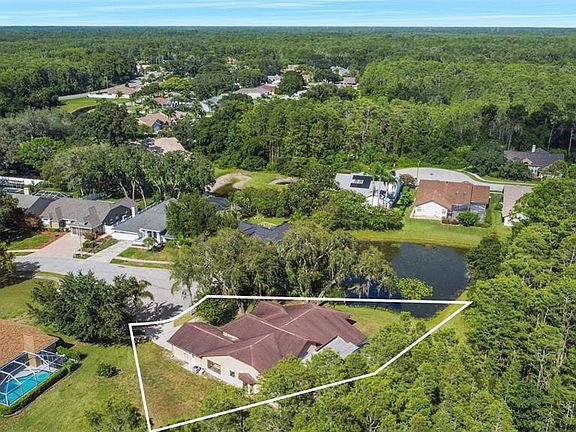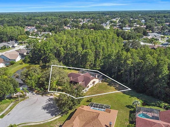 If you are looking for the home that embodies everything quintessential to the American dream home? You've just found it: a quiet, cul-de-sac pool home, in a peaceful and sought after neighborhood, close to amenities like parks and local markets! This stunning 3 bed, 2.5 bath home in Hunter's Ridge sits on nearly half an acre, right at the end of the cul-de-sac. The conservation lot behind the property means you'll never have to worry about rear neighbors. It's just been remodeled and features tons of upgrades, including fresh paint, new granite counters throughout, updated lighting and fans, new carpeting, and more! Two raised flower beds flank the double door entry, which opens into a huge foyer. The formal living room is impressive and expansive, with crown molding and soaring vaulted ceilings that add volume to the enormous space. A formal dining room allows plenty of room to host your next dinner party, or sit-down family meal. The bright kitchen offers new tile flooring, a breakfast bar, a built-in desk area with pantry/storage, and an eating nook with the most charming bay window that lets in plenty of natural light. The kitchen overlooks the spacious family room, which includes a fireplace for chilly evenings; it's a great spot for game night or your next binge-watching session. Easy-to-maintain laminate flooring lines the living areas. The main suite is generously sized, with French doors that open right up to the lanai and pool area. Retreat to the privacy of the primary bathroom with its large dual sink vanity, soaking tub with a beautiful stained-glass window, and newly tiled step-in shower and flooring. Both guest bedrooms are sizable with plenty of closet space so that your family or visitors are always comfortable. The guest bath features a separate tub and walk-in shower. There's also a half bath for added convenience. The lanai can be accessed via a French door from the family room; relax in the shade under the ceiling fan, or catch some rays on the newly refinished pool deck. On the hottest Florida days, you can cool off in the newly refinished pool! The screen-enclosed pool area offers views of the yard and the wooded conservation area out back. Hunters Ridge is a quiet, deed-restricted community. Nature lovers will be thrilled that this home is located only 2 miles away from the beautiful Starkey Wilderness Park with its hiking and equestrian trails, bike trail, playgrounds, campground, pavilions, and more. Starkey Market is less than 3 miles away; it's well-known for its boutique produce and grocery, local vendors, plus an on-site eatery and a beer & wine bar. Its centralized location near the newest exit off the Suncoast Parkway in Pasco County means that Tampa and its amenities, including the international airport, are also easily accessed. Don't miss your chance to own your piece of the American dream, be sure to see it today! Repaired sinkhole.