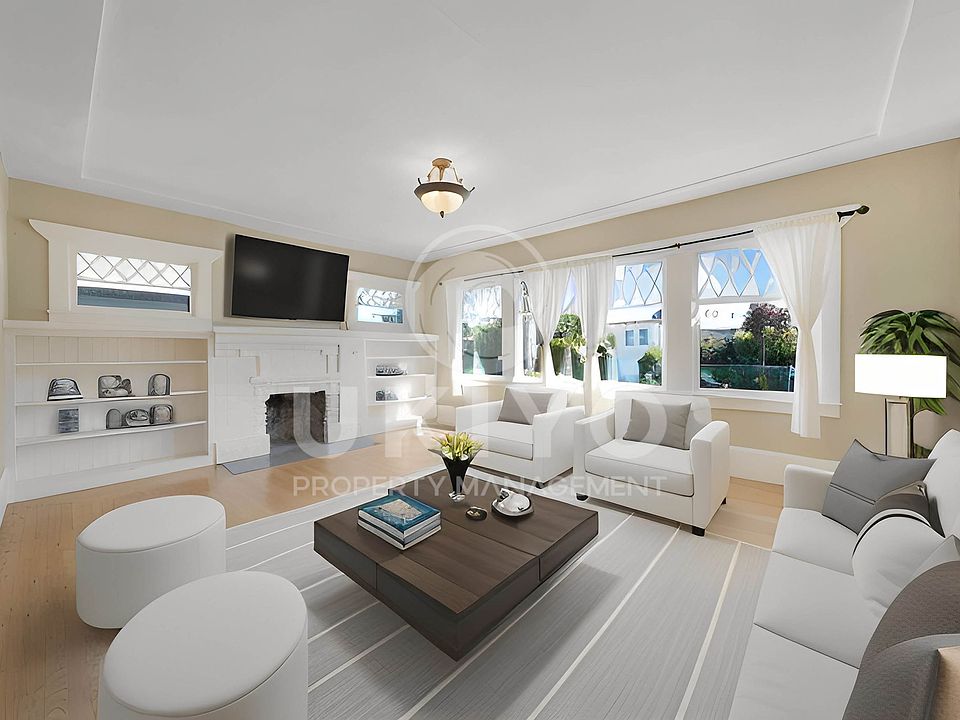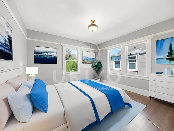 Welcome to this stunning 4-bedroom, 2-bathroom Craftsman-style bungalow, offering 2,310 sq ft of bright and sunny living space. Built in 1918, this home blends timeless architectural details with modern updates, featuring beautiful hardwood floors upstairs and luxury vinyl plank flooring downstairs. The upstairs living space includes a remodeled kitchen with stainless steel appliances, a gas range, a full-size washer and dryer, and charming built-in shelving alongside a cozy fireplace. The bathroom features a tub and shower combo. The downstairs living space, accessible via an interior staircase or a separate backyard entrance, adds flexibility with two bedrooms, a full kitchen, and its own washer and dryer. This home offers unparalleled convenience, situated at the corner of Market St and 52nd St. It's just a 2-minute drive to the onramp for Highway 24 and the MacArthur BART station, making commuting a breeze. The heart of Telegraph Avenue, with its vibrant restaurants and shops, is also just a couple of minutes away, offering endless dining and entertainment options. The property features an attached garage with additional room for two cars to park in the driveway. A fully fenced backyard, a separately fenced front yard, and a private patio provide ideal spaces for relaxation or entertaining. Additional amenities include a dishwasher, disposal, heat, window coverings, and pet-friendly options. Don't miss the opportunity to call this charming Craftsman home yours!