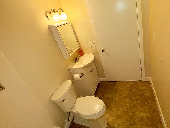 Updated bathroom, new: flooring, vanity, toilet, vanity mirror, trim, exhaust fan, paint