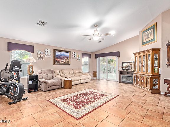 Bright and open 3 bed 2 bath home with and open floor plan. Huge great room with vaulted ceilings for family entertaining. Tile flooring in the great room with exterior access to the backyard. Spacious master suite with a Walk-in closet. Private enormous pie-shaped corner lot back-yard that is landscaped like a resort for your enjoyment and an attached storage room or spa room that is enclosed and two detached outbuildings/sheds that can be used as workshops or additional storage. Large covered back patio with lights and fans. Double RV gate to the backyard. Security front door. Close to 101, I-10, and Cardinal stadium and hospital.