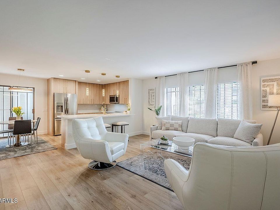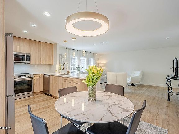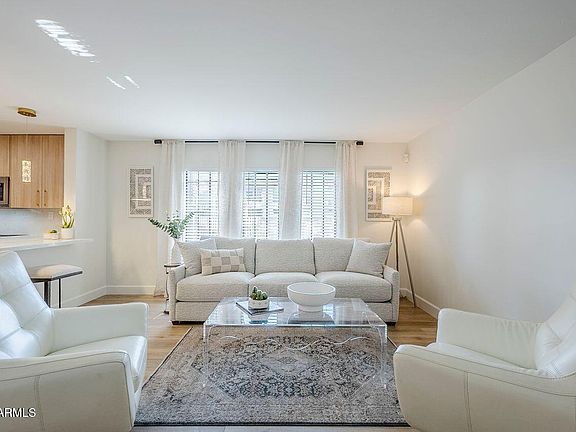 Beautifully remodeled designer condo in the coveted Biltmore Cloisters. This move-in-ready home features an open-concept layout with warm white oak cabinetry, quartz countertops and brushed gold fixtures throughout and brand new, premium stainless steel appliances. Abundant natural light, a spacious walk-in closet, and thoughtful design details throughout add to the comfort and elegance. Located in a courtesy guard-gated community with resort-style amenities including a year-round heated pool, tennis courts, and more. Short-term rentals are allowed, offering flexibility for full-time living, a seasonal escape, or an investment. Just moments from Biltmore Fashion Park, dining, golf, trails, and the airport—