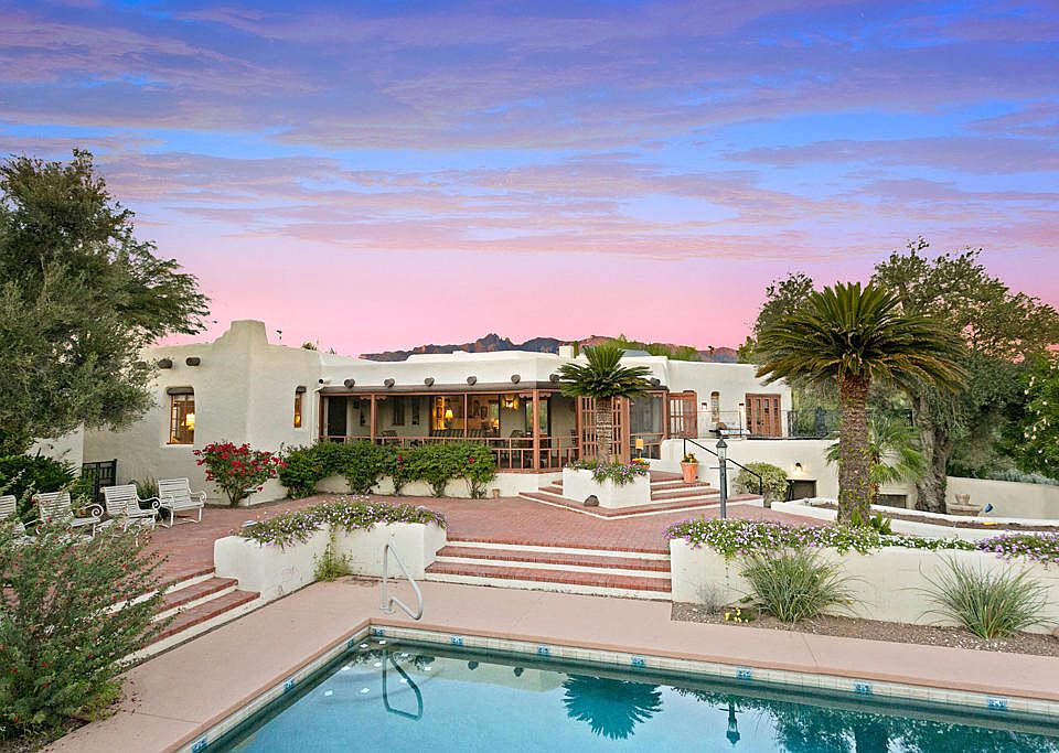 A TIMELESS JOESLER CLASSIC IN THE ''OLD'' CATALINA FOOTHILLS. Sited on a ridge top 3.35 acre 360 view lot, this masterpiece offers the very best of the Tucson lifestyle. The perfect placement, solid adobe/masonry/stucco construction, charming details, with all the kitchen/bathroom and mechanical systems beautifully maintained and upgraded to today's standards - a true delight. Multiple level open and shaded patios, a huge screened beamed ceiling entry porch, an outdoor view dining patio and all the charming interior spaces, details and finishes in the finest Joesler tradition. Also a detached 835 SQF 2BR/Full Bath/Kitchenette Guest House for extended family/visitors. Plus, a detached additional 2 car garage and work shop. Pool, gardens, 11 fruit/nut trees. 1st time available in 45+ years.