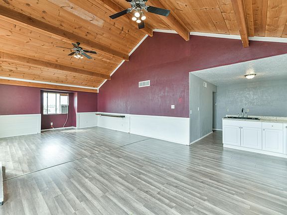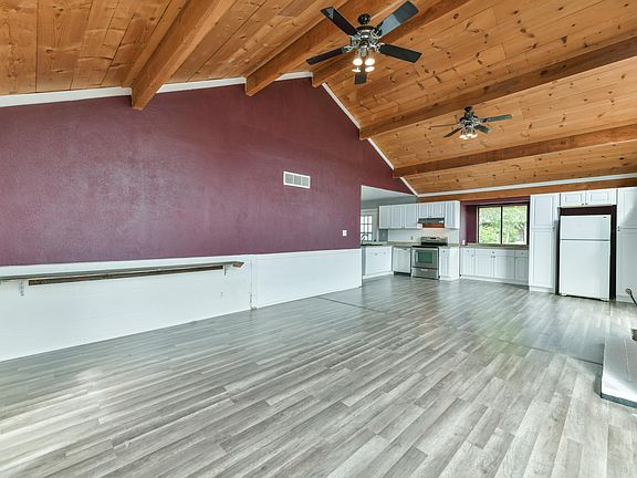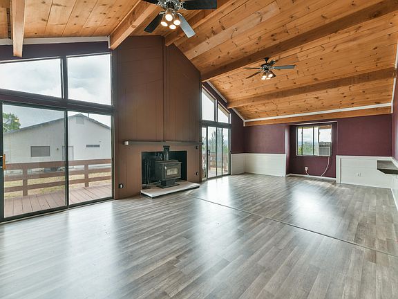 - Interior Features: Ceiling Fan(s), Counters-Laminate, Live on One Level, Master On Main, Raised Ceilings 9+ft, Smoke Detector(s), Wash/Dry Connection, Beamed Ceiling, Fireplace-Woodburn, Kit/Din Combo