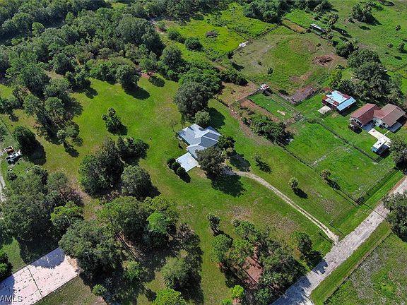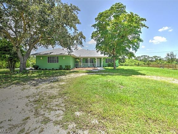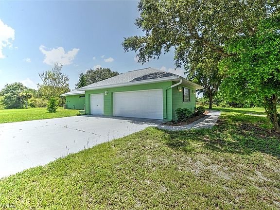 Located on 4.63 Acres this 3 Bed/2 Bath concrete block home built in 2003 features an air conditioned attached 3 car garage centrally located in Buckingham’s Rual Acreage Estate Community yet still close to all amenities. This quite peaceful location has tons of privacy located on a private no outlet road. This home is being sold Turnkey, everything stays, the perfect place to call home. As you walk up to the front porch and enter your new home you will love the feel of the open floor plan that shows light & bright. The large master suite features a walk-in closet with en suite bath, soaking tub, shower and dual vanities. The central kitchen features stainless appliances installed in 2023 and real wood cabinets. The spacious living room w/ French doors leads to a large 357 sq. ft. newly screened lanai with expansive views of the acreage property. NEW ROOF installed in 2022 & AC installed in 2016. Freshly painted inside. Split bedroom floor plan w/ attached murphy bed in the guest bedroom. Zoned AG-2 & non-deed restricted allows for plenty of room to add on and expand & have equestrian animals. Not located in a flood zone & county taxes only. Ready for immediate occupancy. Must see!