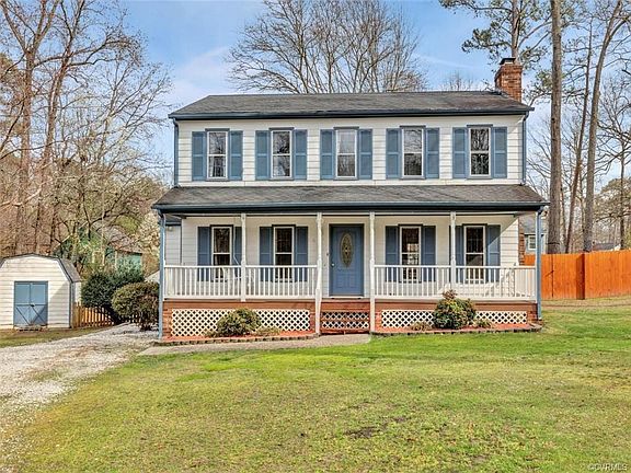 Welcome to 5201 Parkerstown Rd. in the Ashton Woods North neighborhood of North Chesterfield! Built in 1986, this 1,672 sq. ft. two-story Colonial-style home features three bedrooms, two full baths, and one half bath, to include the master bedroom with en-suite bathroom. With large front and rear yards, as well as a driveway and detached storage shed, this home's outdoor space is well utilized and perfect for families of all sizes. Inside, you will find hardwood floors upon entering, with access to the formal dining space from the entryway. This dining space is located within close proximity to the kitchen, with gorgeous wood cabinetry and attached laundry room. Just beyond the kitchen rests the large living room with fireplace. Upstairs offers two bedrooms which share a full bath just down the hall, as well as the master bedroom with en-suite bathroom. The walk-up attic allows for ample storage space too. A neighborhood pool rests within walking distance in this family-friendly neighborhood. Located within close proximity to 288 for easy access all over Richmond. Call to schedule a showing today!