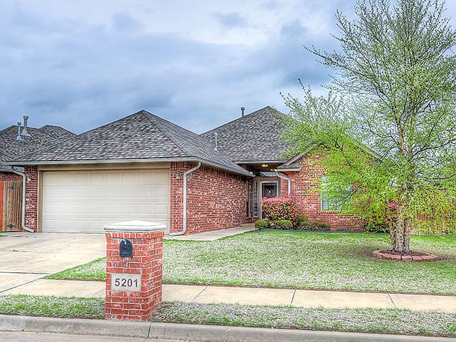 Enjoy maintenance free living in a secure gated community with lushly landscaped yards! Easy access to I-40 & I-240 and close to Tinker AFB and Heart Hospital. Home features open floor plan with kitchen opening to living room. Solid surfaces throughout, custom cabinetry, crown molding, tile, wood floor in study, island in kitchen, large master, his and her closets and vanities, sprinkler system and built in security. Home warranty plan included for buyers. Call Alan Van Horn at 405-823-6766 to view your new home