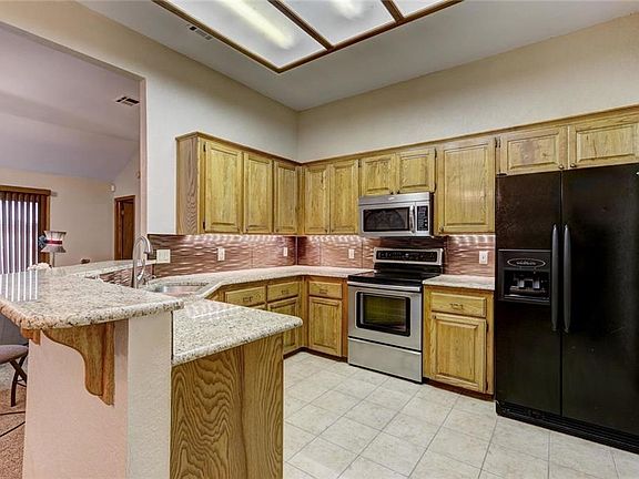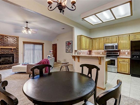 This home won't last long! This is a 3 car garage which is rare in this neighborhood that's in Moore Schools!! Newly painted, granite countertops, beautiful backsplash, under cabinet lights, tiled showers, double hung Low E vinyl tilt-in windows. Registered Storm Shelter in the 3rd bay. Shed w/loft. Fireplace is gas or wood. Ext lights on timers. Master w/whirlpool tub and a separate shower, Australian closet, double vanity. Open patio.