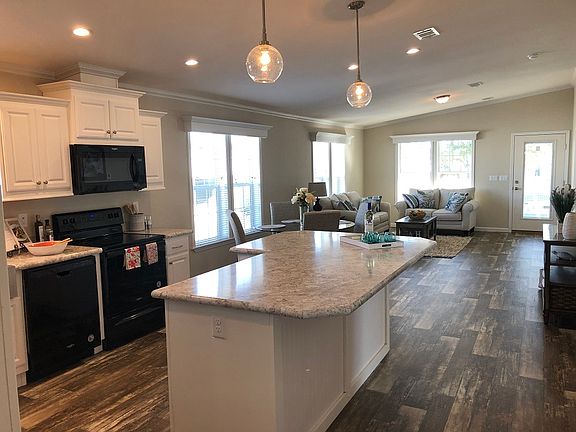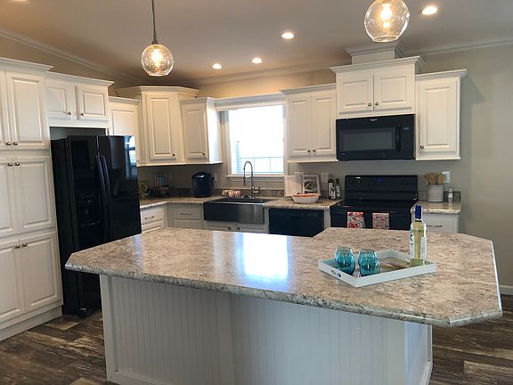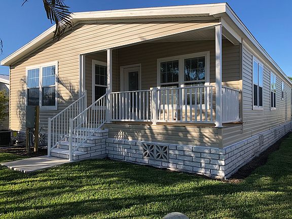 55+ age qualified community. Brand New Contemporary 2020 Skyline Bayport with 3 bedrooms, 2 full bathrooms and Large Great Room is simply stunning! The oversized two car driveway/carport will leave you room for your golf cart plus locked storage. This home boasts a front and rear porch with perfect views of the Florida sunrises and sunsets. Upon entering this beautiful home and you'll immediately notice the expansive vaulted ceilings all with white crown molding accents. Includes a very desirable Open Concept starting with a beautiful center island kitchen with solid wood white cabinets with soft close drawers and brushed nickel pulls and knobs. A large 3 level pantry closet offers plenty of storage. Whirlpool kitchen appliances are included. The granite-like countertops offer an abundance of space which include a breakfast bar great for entertaining. All flooring is a solid surface natural wood-like surface. The kitchen leads to the dining room with brushed nickel lighting then flows into the open living area and custom built-ins to accommodate all your entertainment media needs. Plenty of windows invites ample natural light and a view to the rear porch. The master bedroom can accommodate large furniture, wired for fan and includes a large walk-in closet with ample space and storage. The master bath has dual sinks with granite-like countertops and white cabinets. A large linen closet offers additional space which is located next to the walk-in shower. The second full