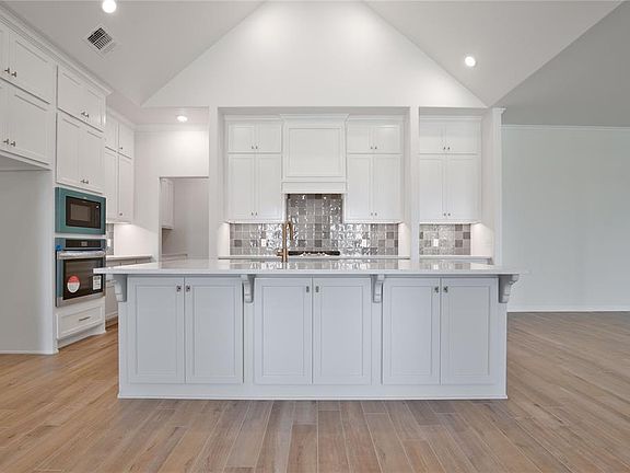 OVERSIZED LOT IN HIGHGARDEN NEAR AMENITIES LOADED WITH UPGRADES! This Lynne floor plan includes 3,805 Sqft of total living space, which features 3,425 Sqft of indoor living & 380 Sqft of outdoor living. There's also a 650 Sqft, three car garage w/ a storm shelter installed! Home offers 5 bedrooms, 3 full bathrooms, a powder room, 2 covered patios, a mudroom, & a large utility room that features upgraded decorative tile. Great room offers a center gas fireplace surrounded with our stacked stone detail, large windows, wood-look tile, a ceiling fan, elegant crown molding, & a spectacular cathedral ceiling detail that extends to the kitchen! Kitchen spotlights a center island, 3 CM countertops, custom-built cabinets to the ceiling with upgraded cabinet hardware installed throughout, a large separate pantry, a butler's pantry, stunning pendant lighting, & stainless steel appliances. To further enhance this area, we included the luxurious 3-panel sliding door in the dining area. Prime suite has a sloped ceiling detail w/ a completely separate but HUGE walk-in closet. Here you will always find large windows, a ceiling fan, and our cozy carpet finish. Prime bath features a Jetta Whirlpool tub, a walk-in shower, & a batwing dual sink vanity. Bedroom #2 will feature wood-look tile instead of carpet flooring as a special upgrade. EXTENDED covered back patio extends behind the utility room & primary suite and has a wood-burning fireplace, a gas line, & a TV hookup. Other amenities include Healthy Home Technology, a whole home air filtration system, a tankless water heater, R-44 insulation, & MORE!